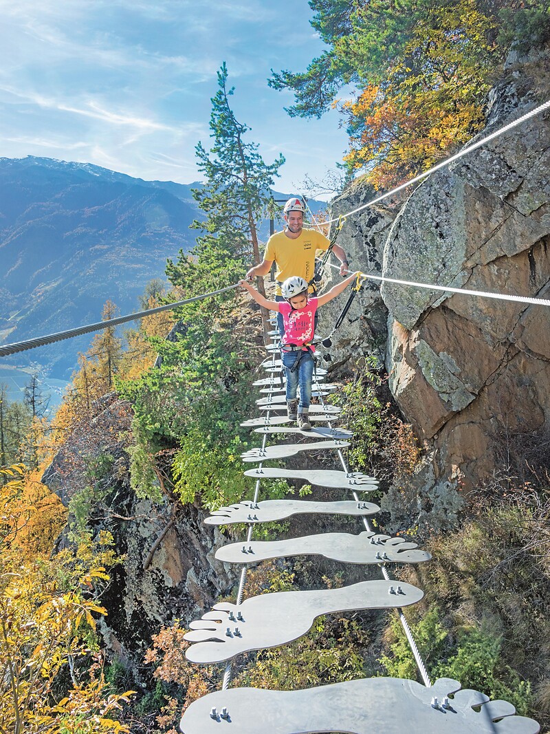 Mit dem Klettersteig „Knott“ bei Unterstell - ideal zum Einüben und Erlernen. Viele Klettersteigneulinge suchen nach einer Möglichkeit um sich an längere und schwierigere Klettersteige heranzutasten. Der Knott lädt nun zum Probieren ein, vonleicht bis schwer. Am Knott gibt es vier Klettersteigrouten, eine kurze Verbindungsroute, eine 20m lange Seilbrücke und zwei steile Leitern. Der Klettersteig weist einfacheTouren, schwierige Passagen, exponierte Wegstrecken und technischeAbschnitte auf und kann zu jeder Tageszeit genutzt werden, denn der Zustiegund Abstieg sind kurz.