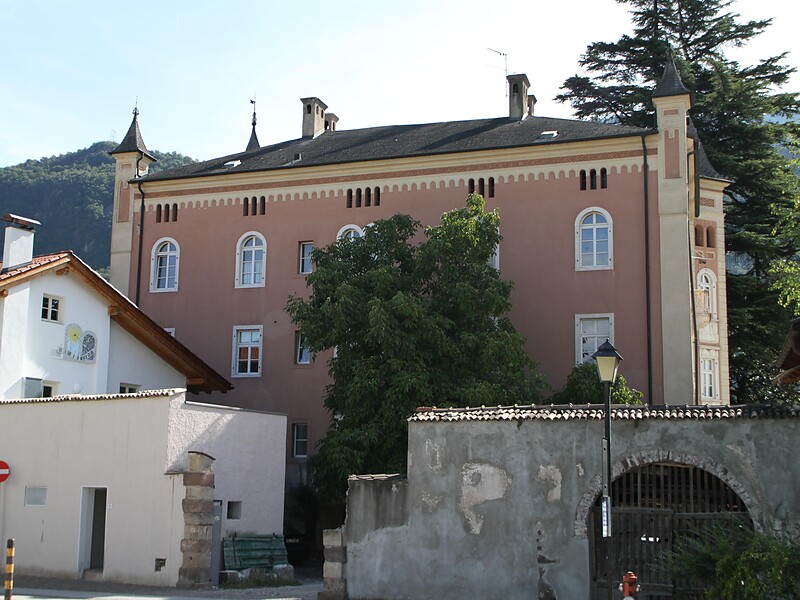 Der ursprüngliche Name geht auf die in Bozen als Großkaufleute tätige Familie der Botschen zurück. Am palazzoartigen Hauptgebäude nordwestseitig einläufige Freitreppe zum 1. Obergeschoss, seitlich Ecklisenen mit türmchenartigem Abschluss. Die drei Schaufassaden weisen mehrgeschossige, helmbesetzte Eckerker und ein rustiziertes Sockelgeschoss auf. Darüber Pilastergliederung und axiale Belichtung mit Rund- und Rechteckfenstern. Am Mittelrisalith zur Hauptstraße hin rundbogige, die Traufe durchstoßende Ädikula mit der Rosenkranzkönigin. Abschließend umlaufender Rundbogenfries. An der Hofzufahrt Portalpfeiler in manieristischen Stilformen von 1612.