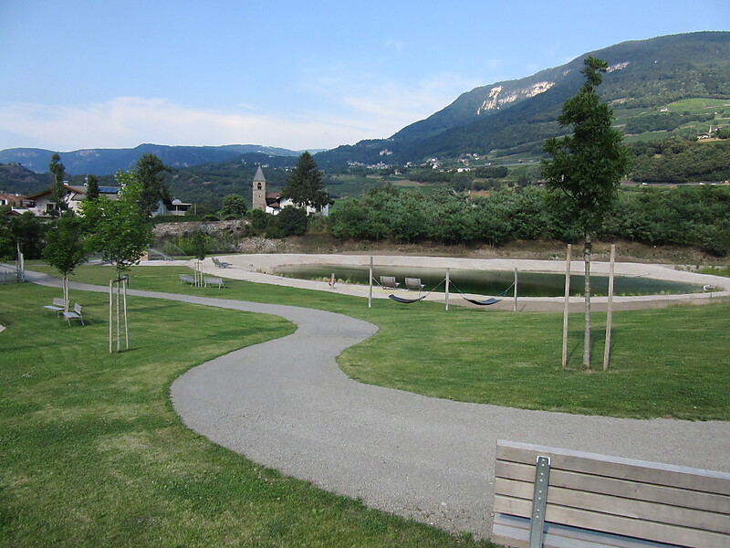 "The Sleeping Giant"local recreation area in Neumarkt/Egna. The "The Sleeping Giant" park is a local recreation area with an area of 8 hectares, equipped with a playground for children, a relaxation area for adults, picnic space, and a pond for fishermen. A giant is located in the middle of the park, arranged for children to climb on. Adults can relax on several hammocks, park benches, and sunbeds. The recreation area is located near the Trodena River, a "sleeping giant" because of its calm flow but, once "awakened," it can get really dangerous.