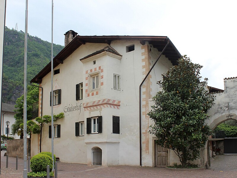 From a medieval core, remodelled in the 17th century during the Renaissance, a pointed-arch courtyard gate with stone surround and family crest leads onto the street. The stone archway features the letter "A" with an arrow as a bar. Above the front door is a coat of arms in stone consisting of three wavelike curving lines and the initials "L.H.". The ribbed vault and shouldered-arch doors date from 1500; the stone-framed rectangular and double-arched windows, as well as a bay on the façade, are from the 17th century.