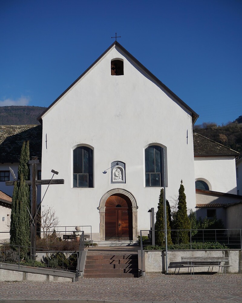 The Capuchin monastery and its small church were built between 1617 and 1620. The church has a simple design in accordance with the style and regulations of the Capuchin Order: simple in terms of furnishings, bare walls, barrel vaults, and a side chapel on the south side. The high altar is dedicated to the Sacred Heart. The pulpit and the side altars are neo-Romanesque and date back to the 19th century. The altar of the side chapel contains a statue of the mother of God with Child from the middle of the 16th century, which is said to have miraculous powers. Between 1999 and 2003, the whole complex was carefully restored. In the little church, this also led to the renewal of the windows and the benches, which – in harmony with the surroundings – are now simple and linear. Thus, the light penetrates through seven beautiful glass panes that seem to communicate with the faithful through their symbolic meaning of colors and number.