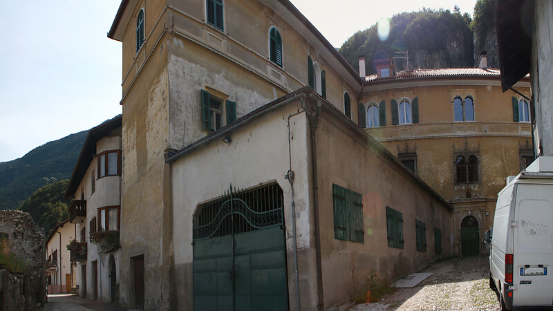 The stone-framed round-arched portal opens towards Goethe Street on the west side of the An der Lan estate, a Renaissance building from the 16th century. Above it you find the beautiful double-arched windows. The south façade is adorned by a belt cornice and large rectangular windows set in stone with wrought-iron grilles. Inside, the central halls have vaulted ceilings, with the wood-panelled room on the first floor a testament to expert woodcarving and inspired by the Renaissance style. In 1817, the building was acquired by the Gelmini zu Kreuzhof family.