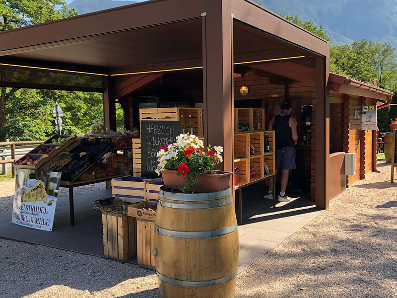 The friendly kiosk Otto is located directly on the cycle path in Neumarkt and offers everything related to the South Tyrolean apple and plenty of regional specialties. For over 10 years, they have been dedicated to marketing and refining their agricultural products. Regionality and sustainability are important to them, which is why they exclusively market their own and South Tyrolean specialties (0 km).