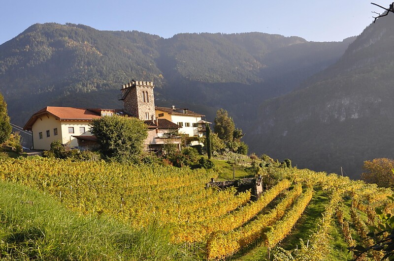 A hill, at 630 meters above sea level, covered with vineyards and surrounded by the majestic woods of the Monte Corno National Park. In the center the maso, whose origins date back to 1812. Maso Thaler Winery is located here, along the Termeno Wine Road, in Gleno, just above the town of Montagna. This is probably the most apt area in Italy for the cultivation of Pinot Noir grapes, thanks to porous terrain with infiltrations of calcareous Dolomite materials, and thanks also to an airy climate characterized by daily sharp temperature differentials, especially in August and September.