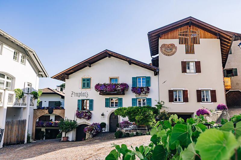 Nel 1557 questa casetta sulla piazza, sempre descritta come piccola, è ancora accessoria dell'odierna casa Amplatz, l'ex locanda "zum Zotten", ed è collegata da tre porte. Successivamente viene menzionata come accessoria della casa Hilber e attorno al 1700 vi abita il parroco Johann Teiss il Vecchio. Nel 1722, i suoi eredi la cedono a Balthasar Öfner, un commerciante di Montagna. Nel 1783, il calzolaio Johann Babtista Monsorno acquista la parte superiore – in aggiunta al denaro per l'acquisto, il venditore riceve un paio di scarpe nuove – nel 1788 Monsorno acquista anche la parte inferiore. Nel 1813, la casa viene divisa di nuovo, un piano viene ceduto a Peter Kaufmann e l'altro a Josef Gaßmann. Nel 1834, Gaßmann cede la sua parte a Peter Kaufmann. Nel 1838 egli lascia la casetta, su cui grava il diritto di patronato del beneficio ecclesiastico di Teiss, al Comune, con l'obbligo di concederla in usufrutto al rispettivo beneficiato a titolo gratuito. Nel 1905, la casetta del beneficio viene venduta a Jordan Amplatz. Nel 2017, Karl Amplatz la vende alla famiglia Zuchristian-Amplatz, che la ristruttura con cura e la integra nella struttura ricettiva di sua proprietà direttamente adiacente (Amplatz). Con questa operazione il cerchio si chiude e la casa del beneficio torna, come già nel 1557, ad essere accessoria dell'adiacente casa Amplatz.